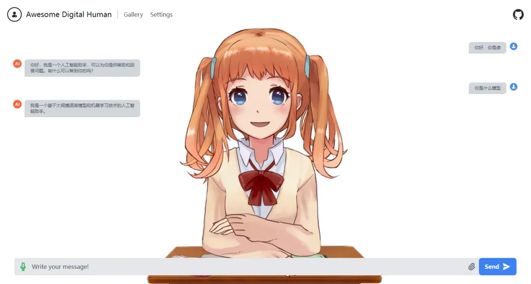 文字交互与语音反馈功能运行流畅,并实现精准的嘴型同步效果。