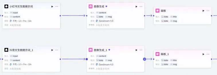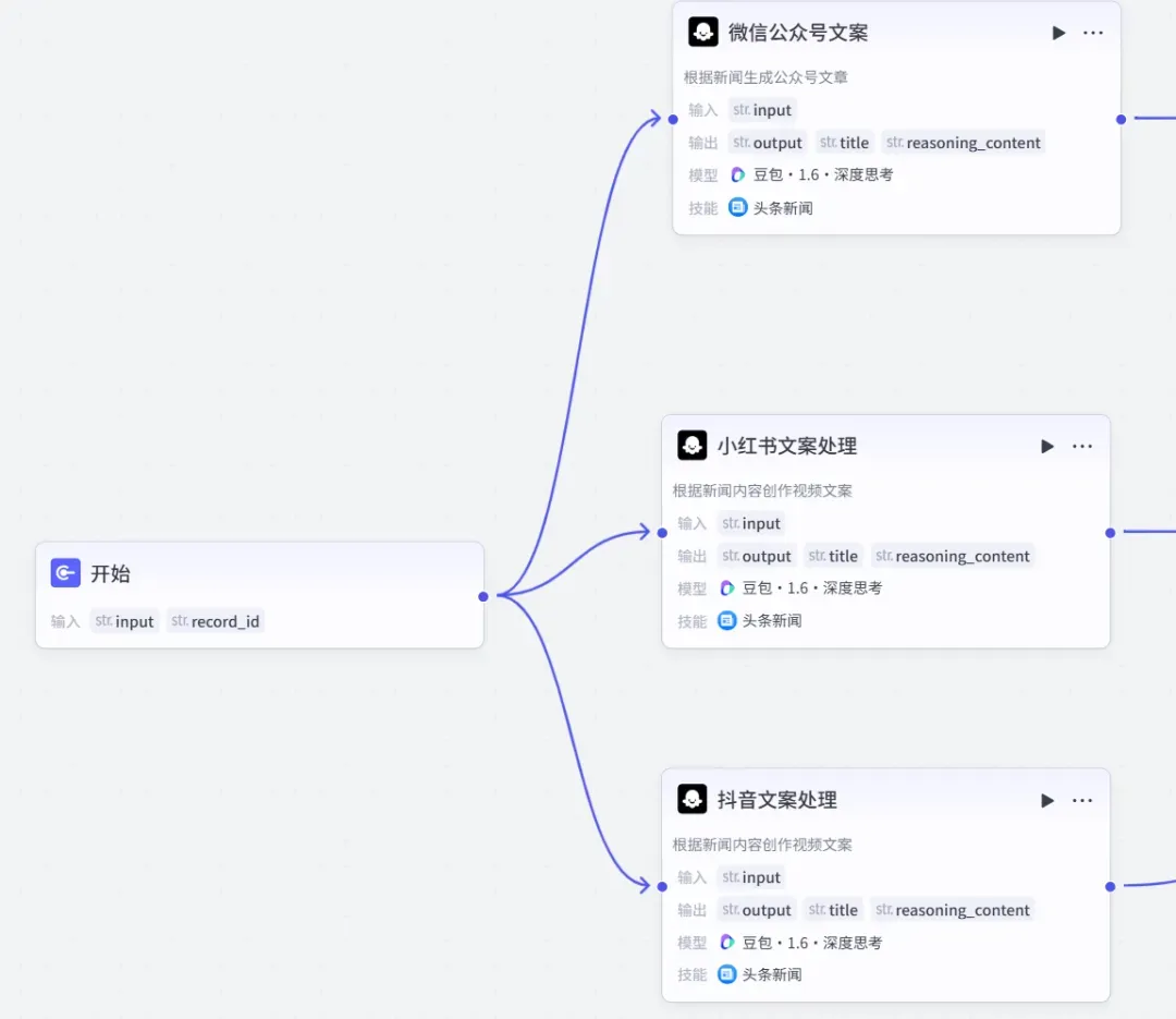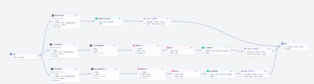 考虑到公众号、小红书和抖音在内容形式上存在显著差异,我们对不同平台进行了独立的工作流设计: