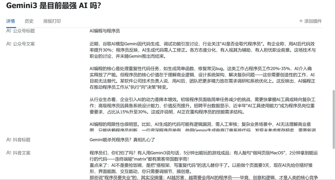 用户输入爆文主题,可以是一段新闻稿,也可以是引发思考的一句话,例如下文案例中的“Gemini3 是目前最强 AI 吗?”。